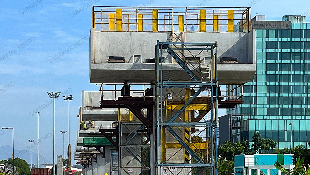 The median and right-hand side of our SM06 ART station is successfully connected with a link bridge structure – marking another significant progress in our KUTS project, especially for the Blue Line. Located near La Promenade, this at-grade station in Kota Samarahan is one of the stations scheduled for completion this year, in line with the commencement of Stage 1 of our ART operations in the fourth quarter.