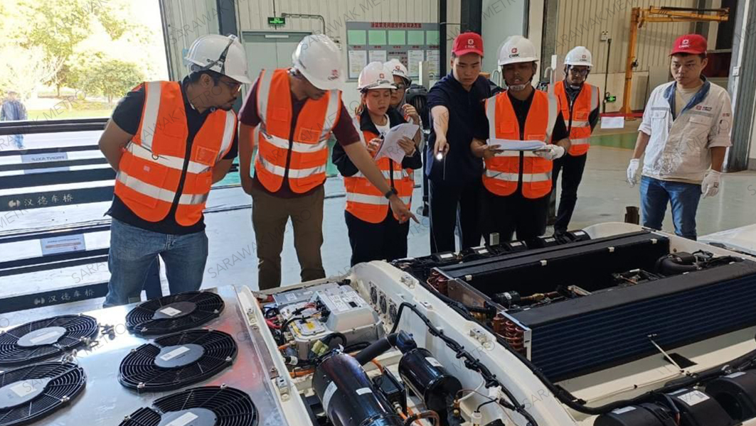 Sarawak Metro recently co-hosted a group of Public Works Department (JKR) officers, who are currently pursuing their Master of Sustainable Infrastructure from the Faculty of Artificial Intelligence, Universiti Teknologi Malaysia (UTM). We organised their visit to the Kuching ART Assembly Facility (KAAF), where they were able to observe the application of hydrogen technology in public transportation through the development of our Autonomous Rapid Transit (ART) vehicles under the Kuching Urban Transportation System (KUTS) project.